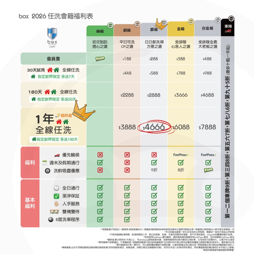 *每個會籍只限登記一個車牌(車隊會籍除外)